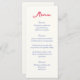 Este encantador menu de casamento ostenta uma letra manuscrita, brilhante e divertida, em tons espantosos de azul brilhante e rosa quente. A adição perfeita a qualquer celebração de casamento divertida e vibrante, este menu pode ser personalizado para atender às suas preferências pessoais. Pode ajustar facilmente a colocação do texto para evitar sobreposições e assegurar uma apresentação sem falhas do menu.