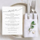 O menu de casamento simples e moderno apresenta um "menu" moderno num anjo com letra serif clássica. Seu convidado vai adorar o visual preto e branco minimalista limpo.