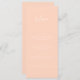 Um simples e elegante cartão de cardápio moderno de pêssego e branco. Apresentando uma fonte de script manuscrita emparelhada com texto moderno limpo. Personalize o texto e as cores de fundo para ajustado do seu tema de casamento exclusivo. Este convite é adequado para cerimônias e recepções de casamento modernas, modernas ou elegantes. Preencha a papelaria do casamento com o resto da nossa Coleção de Casamentos Manuscritos Mínimos Modernos.