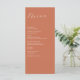 Uma bela design mostrando uma elegante tipografia de caligrafia com script em um fundo de laranja queimado em teracotta. Perfeito para quem ama designs modernos minimalistas. Um na moda e um design de cardápio de casamento com elementos clássicos. Os convites de casamento e outros artigos de papelaria também estão disponíveis.