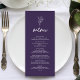 O Menu Casamento Terracotta Minimalista Roxo é perfeito para casais que procuram adicionar um toque sofisticado e na moda à sua recepção de casamento. Apresentando um rico fundo de terracota com sotaques botânicos roxos elegantes e um layout minimalista limpo, este menu melhora lindamente qualquer tema de casamento rústico, boêmico ou moderno. Proporciona uma forma refinada de apresentar a refeição cuidadosamente curada, complementando simultaneamente a decoração geral da mesa. Totalmente personalizável no Zazzle, os casais podem personalizar o texto, o layout e os detalhes para combinar a estética do casamento, criando uma experiência de jantar perfeita e memorável para seus convidados.