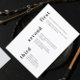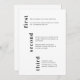 Menu de Casamento de Texto Vertical Preto Mínimo Preto Único com os nomes do cônjuge e a data do casamento no verso. Todos os campos de texto e cores são personalizáveis na ferramenta design.