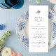 Menus de Casamento de Tistle Blue Watercolor minimalista perfeito para um casamento escocês. Personalize com seus nomes, data e menu de casamento.