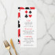 Perfeito para um casamento clássico de casino vermelho, preto e branco em Las Vegas, esses menus podem ser totalmente adaptados para se adequarem ao seu evento. Não se esqueça de pedir o suficiente para cada lugar!