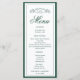 Eleve a sua recepção de casamento com este menu de casamento Elegante e Botânico escondido verde esmeralda, Monograma, projetado para impressionar com a sofisticação do eterno. Com uma paleta de cores escura e branca elegante, este menu mostra o seu monograma personalizado envolto numa delicada crista botânica no topo, acrescentando um toque personalizado e refinado às suas definições de mesa.