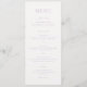Menu de casamento elegante com um design clássico com seu monograma em uma fonte de script junto com seu menu em uma fonte de serifa tradicional.
