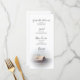 Personalize o encantador Menu de Casamento da Neve Coberta de Neve no Inverno com os detalhes da refeição que você servirá no inverno casual, mas clássico, dezembro, janeiro ou fevereiro, no almoço de chá de panela do celeiro, no janto de recepção de casamentos ou no almoço de casamento postando a salada ou o primeiro curso, a entrada ou o segundo curso e a sobremesa ou o terceiro curso. Este menu nupcial do estilo rural, informal e elegante, apresenta uma fotografia fazenda de um celeiro vermelho-curado coberto de neve branca.