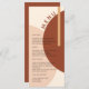 Um cardápio de casamento moderno e elegante que dá uma vibração rústica da década de 70 com seu círculo abstrato e forma retangular em tons monocromáticos de terracota, laranja queimada e bege. Personalize o cardápio do casamento.