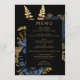 Menu Casamento Dourado Azul Marinho Floral Escuro