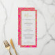 A tipografia moderna do Estilo Índio Rosa e Cor Dourada é a base para esta design de casamento na moda. Todas as informações são facilmente alteradas para fazer seu próprio menu de casamento personalizado. Parte de uma suíte de papéis de carta do Chessie's Fine Designs.