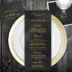 Um menu de caligrafia em preto e ouro para casamentos e eventos especiais que seja totalmente personalizável.