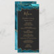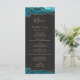 Este elegante e moderno menu de casamento apresenta bordas de cima e de baixo da cor azul lacrimejada, cortada com brilho dourado. O texto aparece em letras elegantes douradas, letras itálicas e em placas em fundo preto ardente. O design de ágata é repetido no reverso.