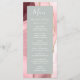 Este elegante e moderno menu de casamento mostra uma cor d'água cor rosa pincelada, aparada com brilho dourado. O texto é exibido em letras brancas elegantes e fontes de impressão em um retângulo verde de sábio pálido. O design de ágata é repetido no reverso.