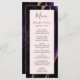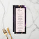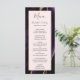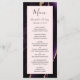 Este elegante e moderno menu de casamento mostra uma cor d'água roxa de fundo arredondada com brilho dourado. O texto aparece em letras elegantes de cinza de carvão vegetal e fontes de impressão em um retângulo cor-de-rosa pincelado. O design de ágata é repetido no reverso.