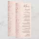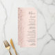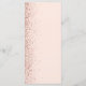 A borda esquerda deste elegante cardápio moderno de casamento apresenta um rosa dourado faux glitter design. O texto personalizável combina a escrita manual de cinzas de carvão, fontes em copperplate e itálico em um fundo cor-de-rosa pincelado. O verso apresenta um design brilhante cor-de-rosa-pincel e rosa.