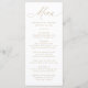 Adicione um pouco de luxo à sua recepção de casamento com este elegante menu de casamento, com "Menu" em sofisticada caligrafia dourada sobre um fundo branco clássico. Este design moderno, simples e elegante permite que os casais personalizem seus cardápios com seus nomes, data de casamento e detalhes das refeições em negrito dourado. Perfeito para casamentos formais e casuais, esta design de eterno complementa qualquer tema e estação de casamento, criando uma experiência de jantar refinada para seus convidados. Quer você esteja planejando uma reunião íntima ou uma grande comemoração, este menu maravilhoso adiciona um elemento chique e memorável ao seu dia especial.