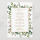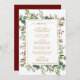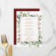 Este menu janto apresenta cor d'água, eucalipto, folhas verdes, bagas vermelhas, ramos de pínus e uma estrutura retangular em ouro falso com fundo vermelho no verso. Para personalização mais avançada deste design, clique no link "Personalizar mais". Itens correspondentes também estão disponíveis.