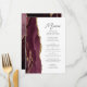 Este elegante cardápio moderno de casamento mostra uma cor vermelha e borrifada, borda agitada, aparada com falso brilho dourado. O texto personalizável combina o script de escrita manual de cinzas de carvão e as fontes sans serif em um fundo branco. O design de burlagem e de ouro é repetido no verso.