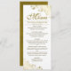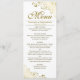 Este belo cardápio apresenta um belo design com texto dourado sobre fundo branco clássico e ouros de folhas e espirais nos cantos. Há uma inscrição em rico para o título e espaço para os nomes do casal e da data do casamento. Projetado no produto de cartão de saudação padrão da Zazzle, este menu está disponível para download digital, fazer-o a escolha perfeita para pedidos de última hora! Uma maneira maravilhosa de adicionar estilo e classe à sua recepção de casamento!
