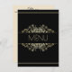 Um Elegante Black and Dourado Wedding Menu desenhado com sotaques dourados em fundo preto. O texto frontal inclui: MENU. O texto inverso inclui os detalhes do Menu cheio em um plano de fundo colorido de linha correspondente, com borda preta. Para personalizar, basta inserir o texto no nosso modelo fácil, substituindo o texto de exemplo.