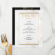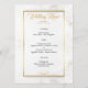 Este Elegante Menu Formal de Casamento foi projetado com uma Dourada Moldura Colorida em um Fundo Branco com Destaques Dourados. O texto inclui: Menu Casamento, Apetista, Entre e Seleções de Deserto. O texto inverso inclui: Os primeiros nomes da noiva e do noivo, sobre um fundo preto com um confete dourado. Para personalizar, basta inserir seus detalhes em nosso modelo fácil, substituindo o texto de exemplo.
