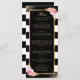 Menu de casamento floral branco e preto elegante com listras brancas, com cor d'água, flores cor-de-rosa-pincel, marfim e pêssego, e verde dourado. Itens correspondentes disponíveis.