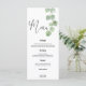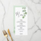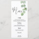 Menu Casamento Dourado Eucalyptus Leaf Script Elegante
