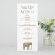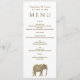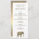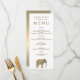 Simples, elegante, menu de casamento branco minimalista em combinação com elefante monograma de folha de ouro - símbolo de amor, fertilidade e boa sorte. Na moda, rico, único, para noiva de gosto moderno e sofisticado.
