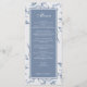 Menu Floral Dusty Blue Elegant Wedding. Um Menu Casamento com um design floral elegante. Lindas flores azuis empoeiradas sobre fundo leve. Perfeito para primavera e casamentos de verão.