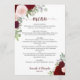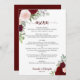 Menu Casamento Elegante Floral Russo Vermelho e Rosa Ro