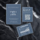 Este moderno menu de casamento apresenta uma sofisticada paleta de cores azul e branca com uma elegante tipografia serif. A frente minimalista exibe cada curso em um layout claro e organizado, da entrada à sobremesa, com títulos de seção ousados para fácil leitura. Os nomes do casal são realçados na parte inferior para um toque personalizado. O verso apresenta um fundo azul sólido com o título e os nomes dos menus, criando um aspecto coeso e contemporâneo. Perfeito para celebrações formais, elegantes ou de inspiração francesa.