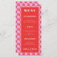 Este menu de casamento totalmente personalizável, com o padrão rosa e vermelho moderno do meio século, arco geométrico e texto personalizado constituiria uma maravilhosa adição para a sua festa! Altere facilmente o texto clicando na opção "personalizar este modelo".