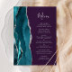 Menu Casamento em Azul Teal Prata Ágata Roxo