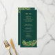 Estes menus de casamento na moda emerald verde e dourado são decorados com ilustrações de eucalipto. Digite seus nomes, data e cursos para criar menus de casamento elegantes para o casamento de tom de joia.