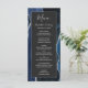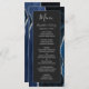 Este elegante e moderno menu de casamento mostra um marinho azul de aquarela de fundo, aparado com brilho de prata. O texto aparece em letras elegantes de cinza prateada e fontes sans serif em um retângulo fora de preto. O design de ágata é repetido no reverso.