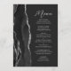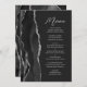 Este elegante cardápio moderno de casamento apresenta uma coloração aquosa preta, aparada com falso brilho prateado. O texto personalizável combina o script de escrita manual de cinzas prateadas e as fontes sans serif em um fundo fora do preto. O design de agata preto e prateado é repetido no verso.