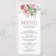 Elegante cardápio de casamento cor-de-rosa com lindas flores.