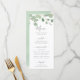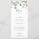 Menu de casamento moderno com folhas de cor d'água eucalipto.