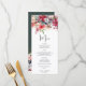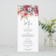 Elegante Menu de Casamento Festivo, com flores de inverno - poinsettias, em tons ricos de vermelho, burgundy, cremes e marfim, bagas festivas, verde-luxuoso e sotaques de dourado falso. Personalize seu próprio menu de casamento usando o modelo fornecido.