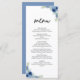 O Menu de Casamento Floral Azul Adorável e Dusty adiciona um toque de elegância e refinamento às suas mesas de recepção enquanto melhora a experiência de jantar geral para os seus convidados. Apresentando designs florais azuis suaves e um layout limpo e sofisticado, este menu é perfeito para casamentos românticos, jardins ou com temas primavera. Mostra lindamente os seus cursos cuidadosamente selecionados enquanto se liga à decoração geral do casamento. Completamente personalizável no Zazzle, você pode personalizar facilmente o menu com seus pratos e detalhes especiais, criando uma apresentação elegante e memorável que os convidados realmente apreciarão.
