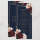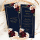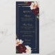 Menu Casamento Floral Azul Naval Bege Borgonha Sombrio