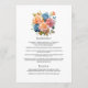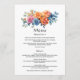 Menu de casamento floral azul, cor-de-rosa, laranja e verde. Ideal para qualquer tema ou casamento de jardim.
