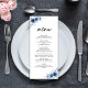 Menu Casamento Floral Azul-Vintage, Francês Elegante