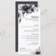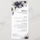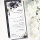 Design de casamento simples e giro, preto e branco. Um olhar clássico, mas caprichoso, com flores pretas, cinzas e creme coloridas, com fontes pretas e cartazes modernos. Edite todo o texto para suas próprias informações. Você pode até mudar a cor de fundo para qualquer coisa que quiser! Também tenho outros estilos semelhantes nesta design. Menu Simples de Casamento Branco Preto Floral Moderno e Elegante