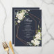 Menu Casamento Floral Branco Azul Geométrico de Cobre