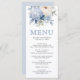 Elegante cardápio de casamento azul empoeirado com lindas flores.