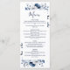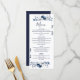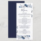 Este menu de casamento floral azul marinho e branco pode ser personalizado com suas informações em tipografia moderna. Criado por Thisisnotme©