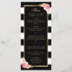 Um menu de casamento floral branco e preto elegante com listras, com cor d'água, flores rosa embebidas e verde dourado. Itens correspondentes disponíveis.