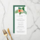 Adicione um toque moderno e elegante ao seu casamento com este design cardápio, mostrando folhas tropicais de cor d'água e flores de hibisco sobre um fundo branco. O lado verde profundo do reverso complementa temas de casamento tropicais, praias ou destinos lindamente.
