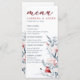 O Menu Floral Flor Vermelho e Azul é um menu desenhado lindamente com trabalho de arte floral vermelho e azul elegante no lado esquerdo. Personalize com seus detalhes de casamento e encontre designs correspondentes na minha loja "DreamHut".